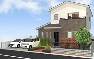門扉のないオープンスタイルの門まわりを、開放感のある門扉やフェンスを設置するセミクローズスタイルに変更するプランです。車庫には、カーポートと跳ね上げ門扉を取り付けて、統一感のあるモダンでスタイリッシュな門まわりに。